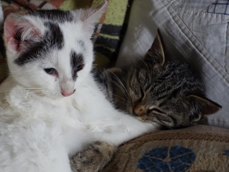 Sie verstehen sich sehr gut miteinander, putzen sich auch gegenseitig an unerreichbaren Stellen, spielen miteinander und kuscheln sich zusammen.