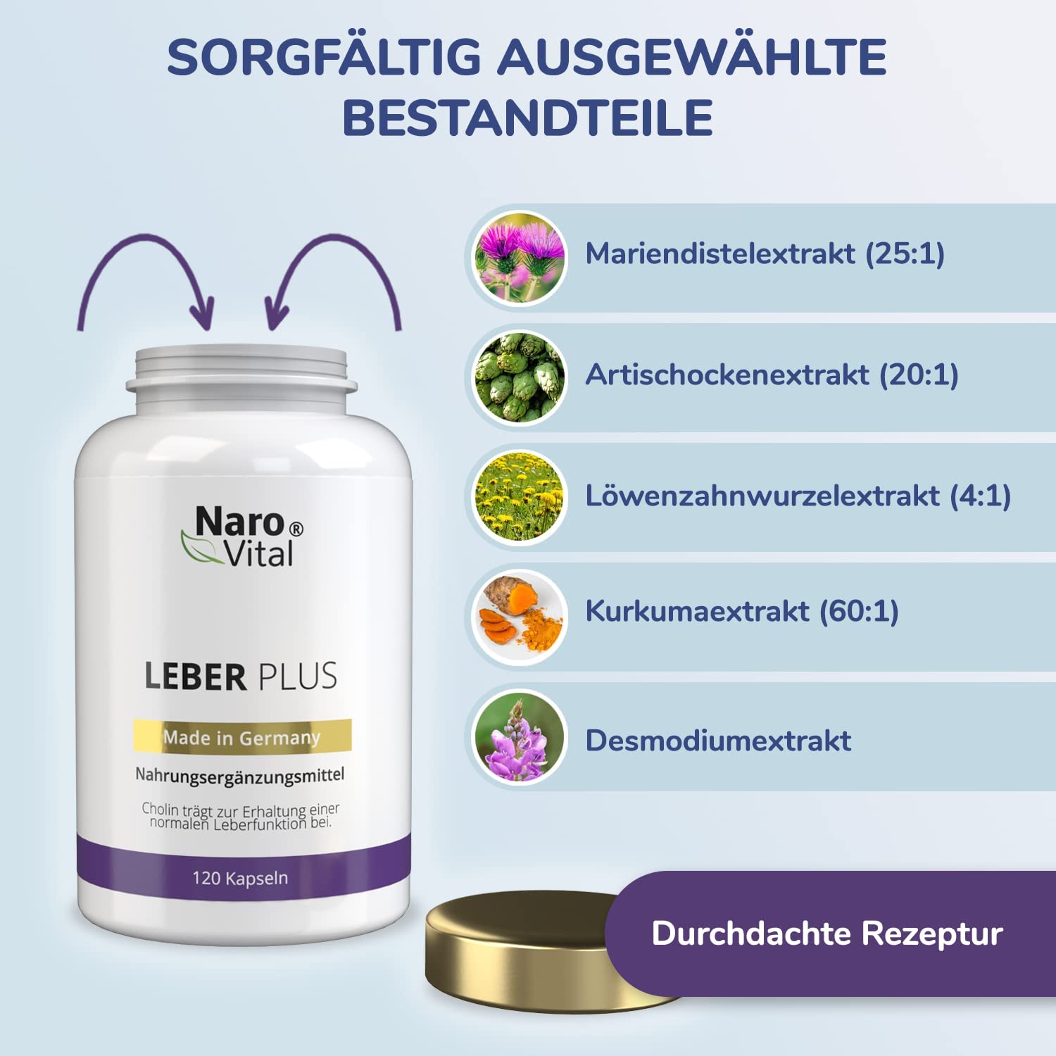 Mariendistel Kapseln hochdosiert von „Naro Vital“ - 80% Silymarin, Artischocken, Löwenzahn, Curcuma, Desmodium - Mit Cholin für die Leber - 120 Kapseln um 25€