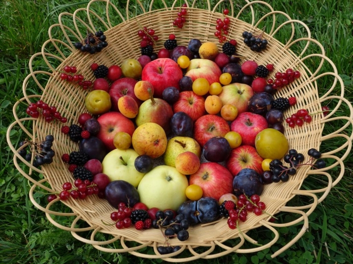 „Dann sprach Gott: Siehe, ich gebe euch alles Gewächs, das Samen bildet auf der ganzen Erde, und alle Bäume, die Früchte tragen mit Samen darin. Euch sollen sie zur Nahrung dienen.“ 1. Mose 1,29 Obsternte in herrlicher Fülle und bunter Vielfalt